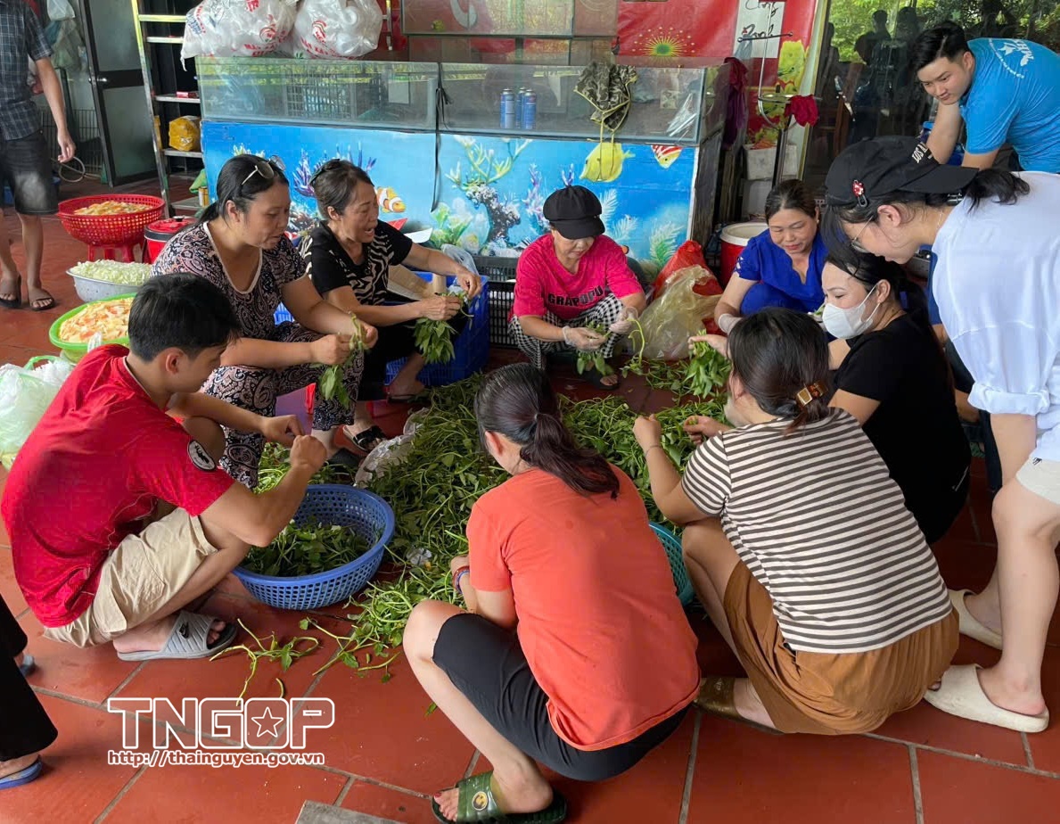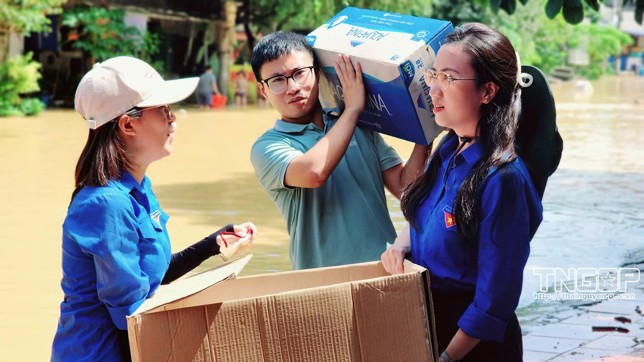 Đoàn - Hội Sinh viên Trường Đại học Kỹ thuật Công nghiệp đã huy động lực lượng với 10 đội hình xung kích. Từ ngày 7/10 đến ngày 9/10, các đội đã tỏa đi nhiều điểm ngập nặng như phường Trung Thành, Tích Lương, tổ 14 Gia Sàng, xã Phú Bình, khu vực đê Nông Lâm, đường Bắc Sơn… để giúp người dân di dời tài sản, chuẩn bị các nhu yếu phẩm. Trong ba ngày cao điểm, các đội đã hỗ trợ tổng cộng 600 suất cơm, 300 ổ bánh mì, 100 suất xôi, 60 suất cháo và 20 thùng nước sạch cho người dân.