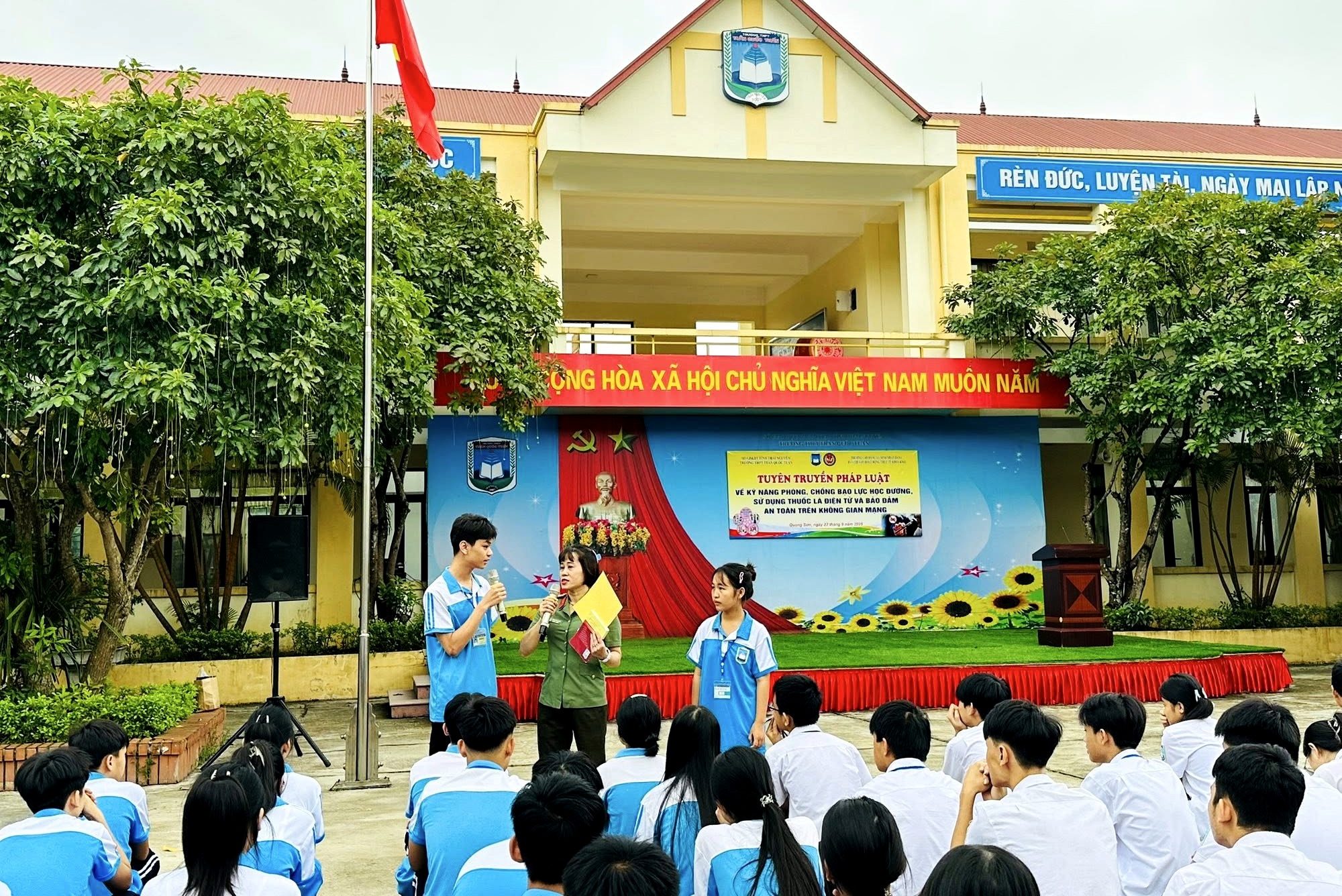 Trường THPT Trần Quốc Tuấn (xã Quang Sơn) phối hợp cùng Trường Cao đẳng An ninh nhân dân I tổ chức tuyên truyền pháp luật về phòng, chống thuốc lá điện tử (ảnh minh họa)