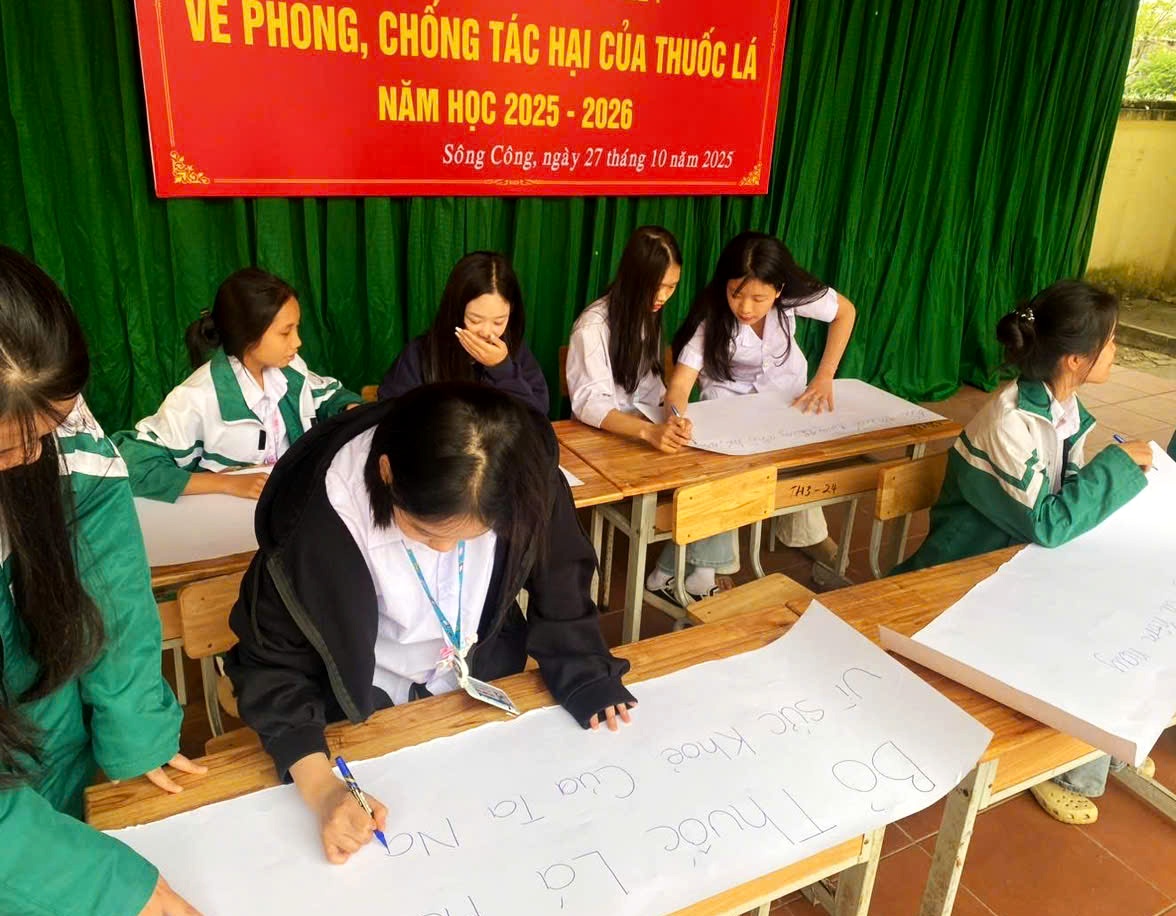Học sinh Trung tâm Giáo dục nghề nghiệp - Giáo dục thường xuyên Sông Công tham gia hoạt động ngoại khóa tuyên truyền phòng, chống tác hại thuốc lá (ảnh minh họa)