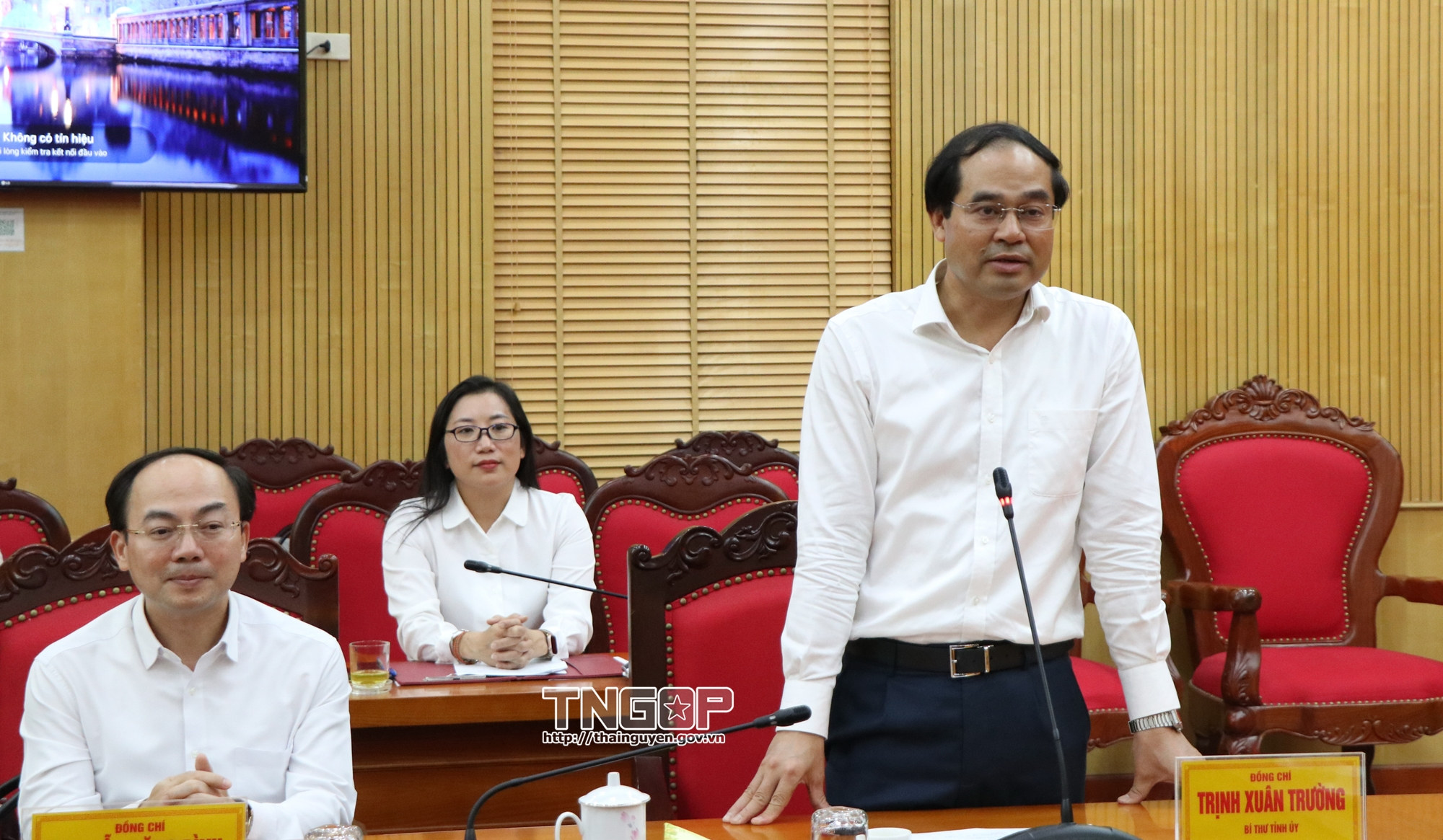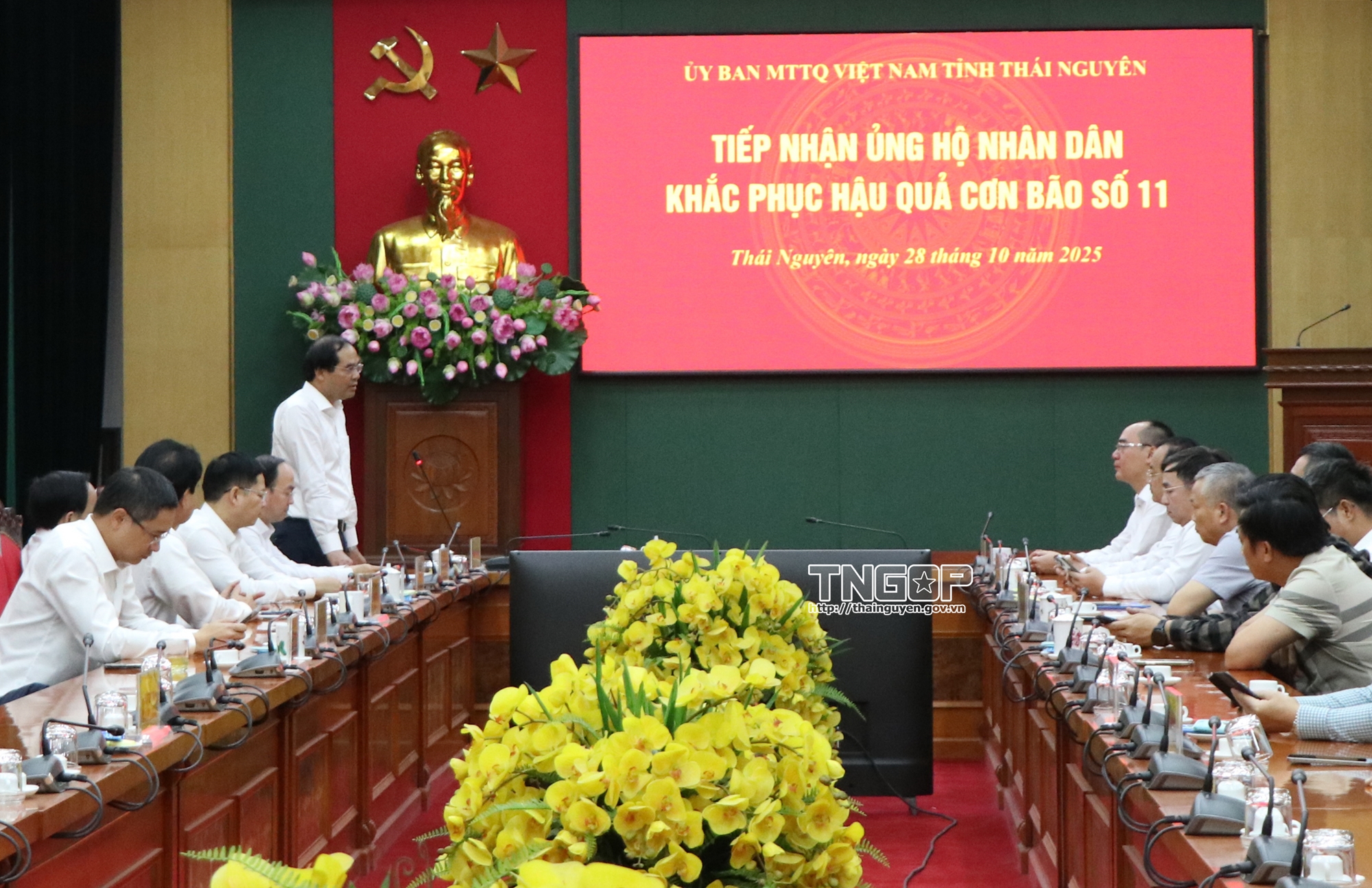 Thay mặt lãnh đạo tỉnh Thái Nguyên, đồng chí Trịnh Xuân Trường, Bí thư Tỉnh ủy bày tỏ lời cảm ơn sâu sắc tới Đoàn công tác đã quan tâm, ủng hộ và động viên tỉnh vượt qua những khó khăn trước mắt do bão số 11 gây ra. Đồng chí Bí thư Tỉnh ủy thông tin, đợt mưa lũ vừa qua đã gây thiệt hại nặng nề trên địa bàn tỉnh. Ngay sau khi mưa bão xảy ra, tỉnh Thái Nguyên đã nhận được sự quan tâm, chia sẻ của lãnh đạo Đảng, Nhà nước, các bộ, ngành, doanh nghiệp và đông đảo tổ chức, cá nhân trong cả nước. Những tình cảm và hỗ trợ quý báu đó là nguồn động viên to lớn giúp Nhân dân trong tỉnh từng bước ổn định đời sống và khôi phục sản xuất.