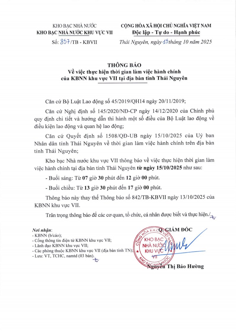 KHO BẠC NHÀ NƯỚC KHU VỰC VII