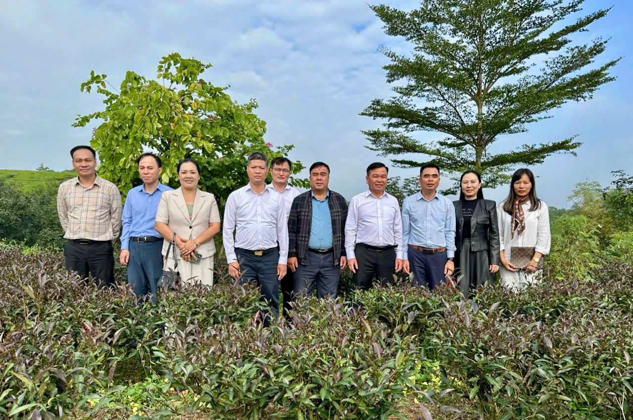 Đoàn công tác của Sở KH&CN tỉnh Thái Nguyên thăm vườn chè tím tại Viện Khoa học kỹ thuật nông lâm nghiệp miền núi phía Bắc