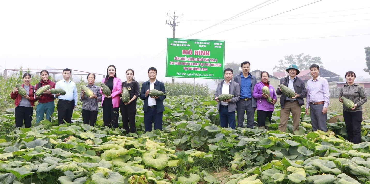 Ngày 03/12/2025, Đoàn công tác của Sở Khoa học và Công nghệ (KH&CN) tỉnh Thái Nguyên do đồng chí Nguyễn Thị Thủy - Phó Giám đốc Sở làm Trưởng đoàn đã tiến hành kiểm tra tiến độ thực hiện nhiệm vụ KH&CN cấp tỉnh “Xây dựng mô hình phát triển giống bí đỏ Mật sao 2 phục vụ sản xuất rau hàng hoá tại Thái Nguyên”. Tham gia buổi làm việc có đại diện Viện Cây lương thực và Cây thực phẩm, chính quyền địa phương cùng các hộ nông dân trực tiếp tham gia mô hình.